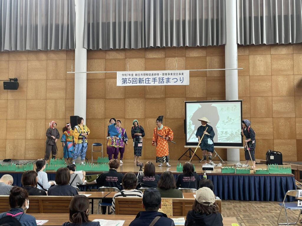第5回新庄手話まつりが、ゆめりあで開催されました。開府400年を記念して新庄のお殿様を題材とした手話創作劇が上演されました。